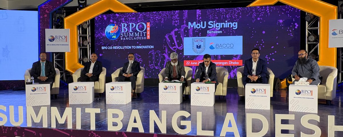 The University of Information Technology & Sciences (UITS), through its Institutional Quality Assurance Cell (IQAC), signed a Memorandum of Understanding (MoU) with the Bangladesh Association of Contact Center and Outsourcing (BACCO) during the prestigious “BPO Summit Bangladesh 2025”, held on June 22, 2025 at Senaprangan, Dhaka.The MoU outlines collaborative efforts between UITS and BACCO to foster industry-academia linkage, enhance student engagement in the BPO and IT-enabled services sector, and open new avenues for training, internships, and career development for UITS students.