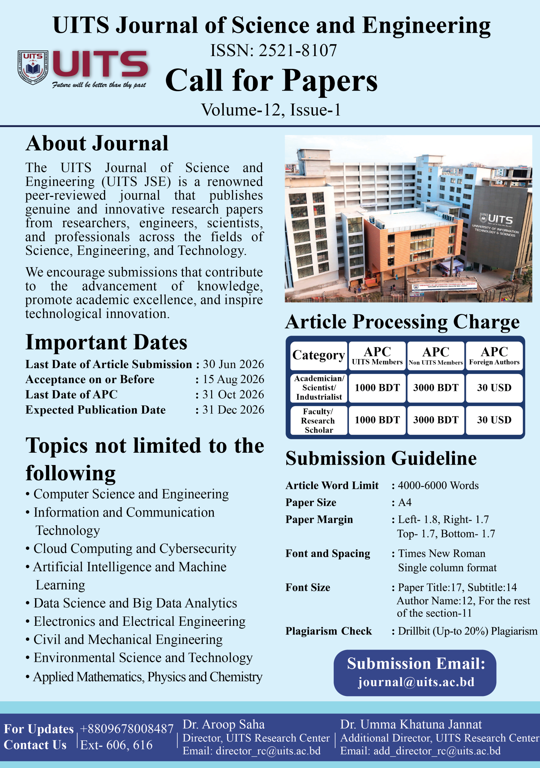 Call For Papers (Science & Engineering) – University of Information Technology & Sciences | UITS